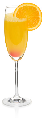 A pezsgős pohárba töltjük a narancslevet és a pezsgőt.