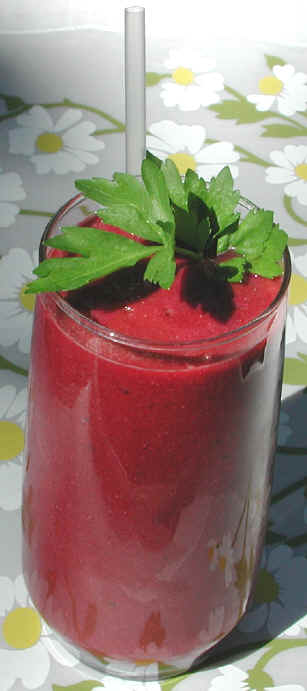 Az összes adalékot turmixgépbe jég nélkül összedolgozzuk, majd pohárba öntjük.