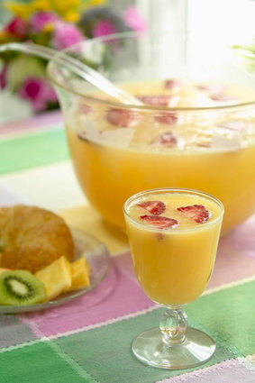 Meghámozzuk és gerezdekre szedjük a narancsot, meghámozzuk az ananászt, végül kikanalazzuk a sárgadinnye belesejét. A gyümölcsleveket külön.külön elkészítjük, végül az egészet pohárba öntjük és megkeverjük. Tetejét narancs- vagy ananászszelettel díszítjük.
