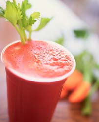 Megtisztítjuk, majd összevágjuk a sárgarépát, a céklát, a gyömbért és a narancsot. Külön-külön elkészítjük a leveket, majd egy pohárba összeöntjük őket. Narancsszelettel díszítjük.